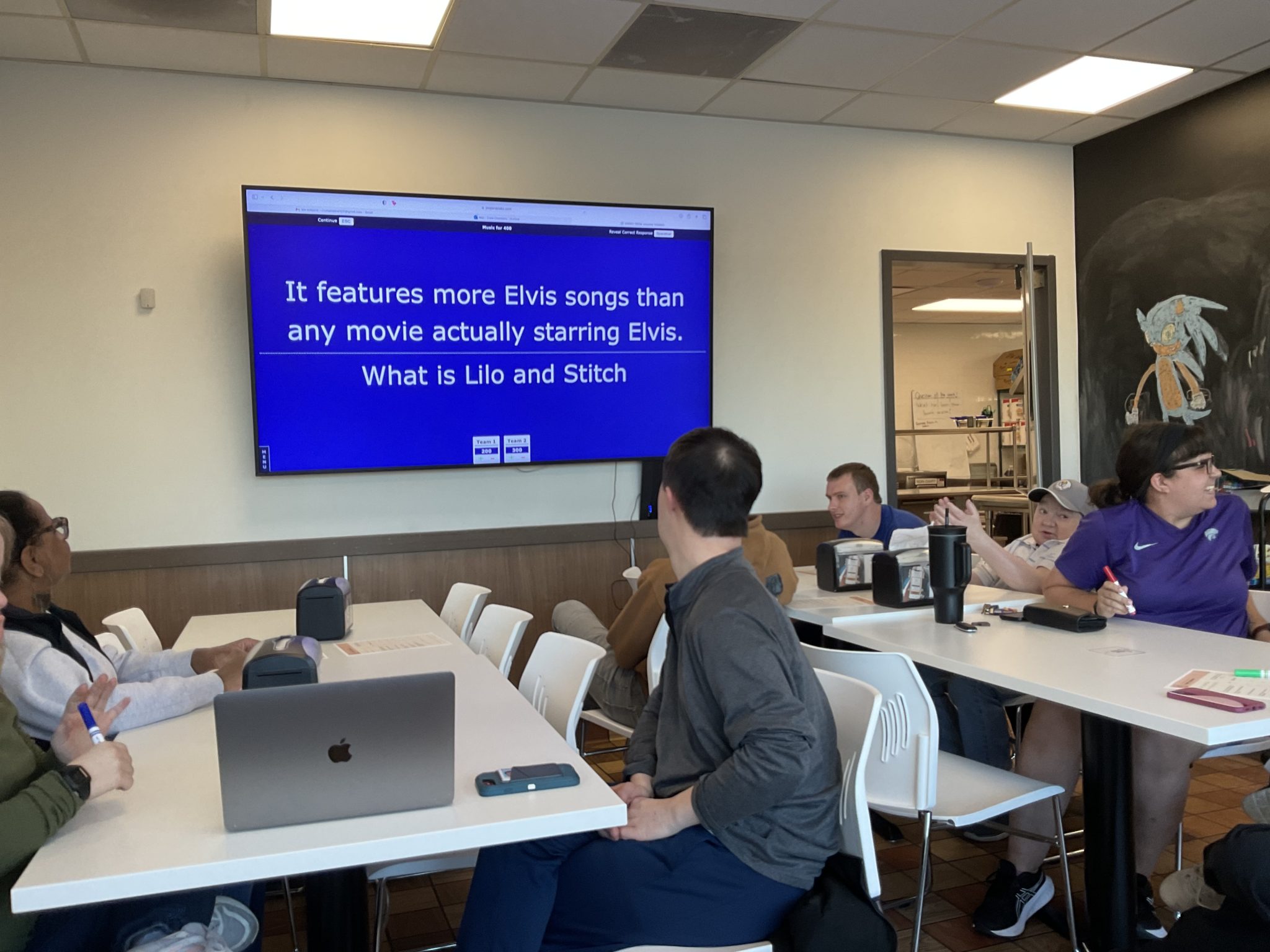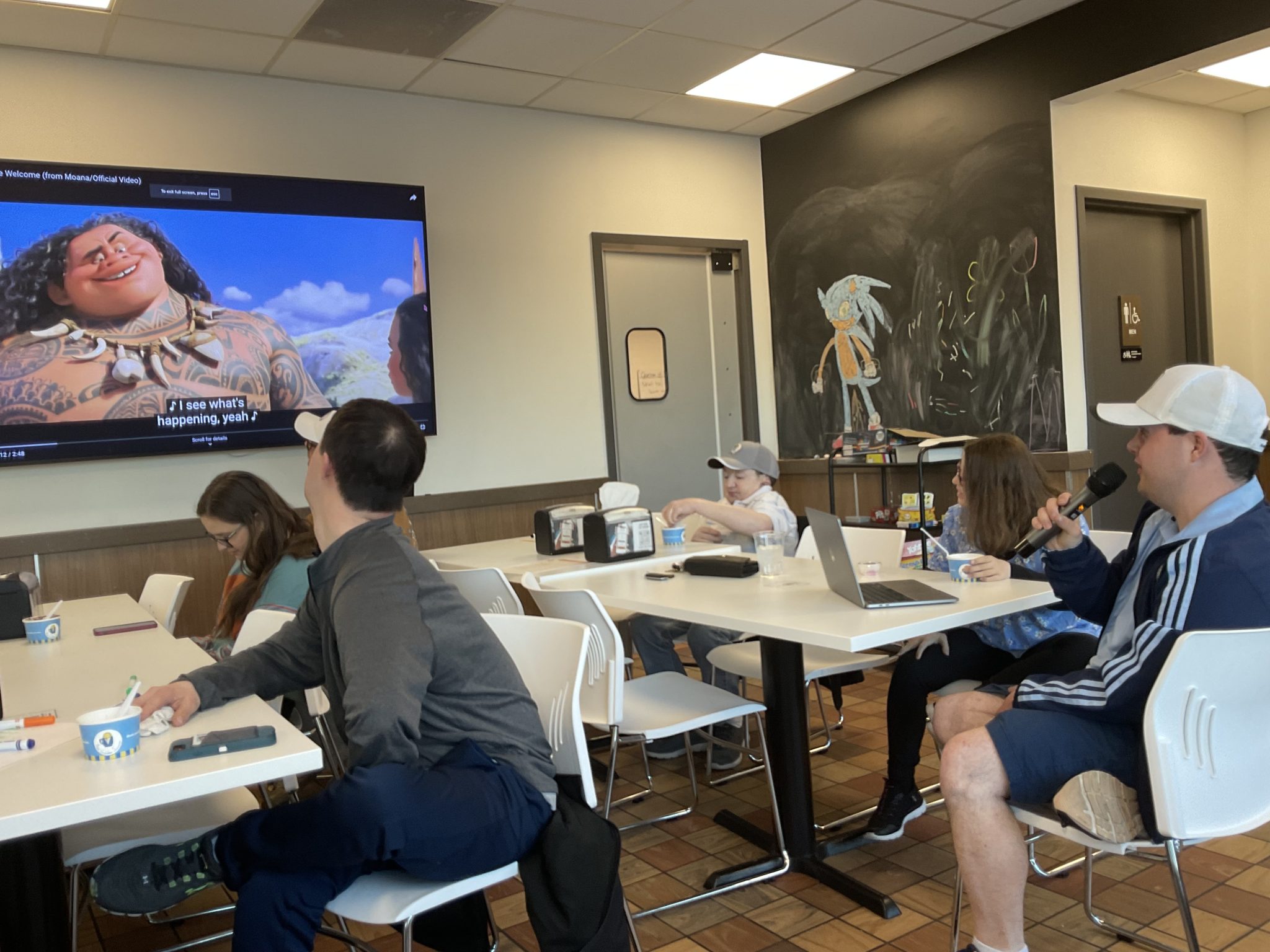 On Monday, April 7th, Super Scoopers gathered to play Disney trivia and sing karaoke! The event was hosted by our wonderful OT students, who put together a fun, Disney-themed Jeopardy-style trivia game. (Yes, Lilo & Stitch really is the movie with the most Elvis songs that is NOT about Elvis!)